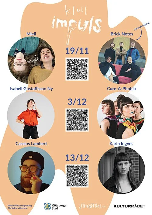 Affischer för konserter arrangerade av Klubb Impuls under 2024. Kika gärna in vårt Bildarkiv från dessa event.